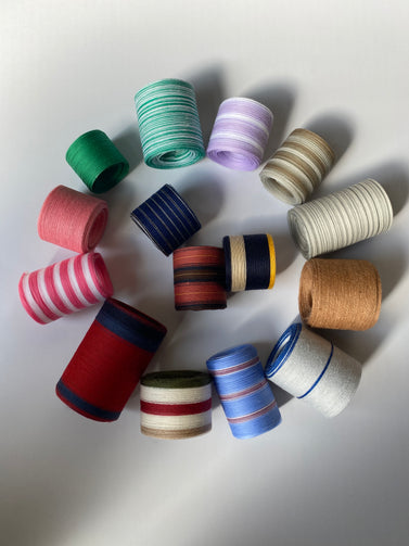 産地の工場で何者にもなれなかった糸が、リボンやボンボンにかわった「次の姿」として、はっきりと存在意義を持つことを「翌ル青」と表現しました。