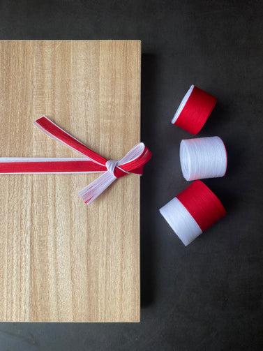 1巻で3箱(W30cm×D30cm×H10cmサイズ)にリボンを施すことができます。※リボンの掛け方によって異なります