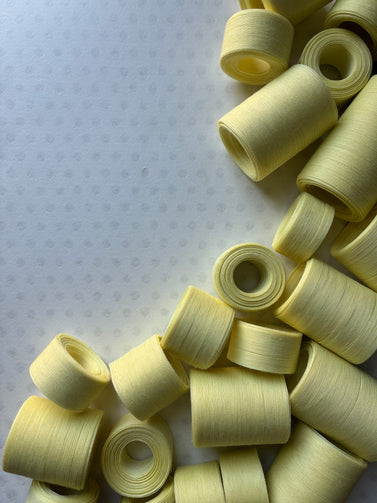 産地の工場で何者にもなれなかった糸が、リボンやボンボンにかわった「次の姿」として、はっきりと存在意義を持つことを「翌ル青」と表現しました。